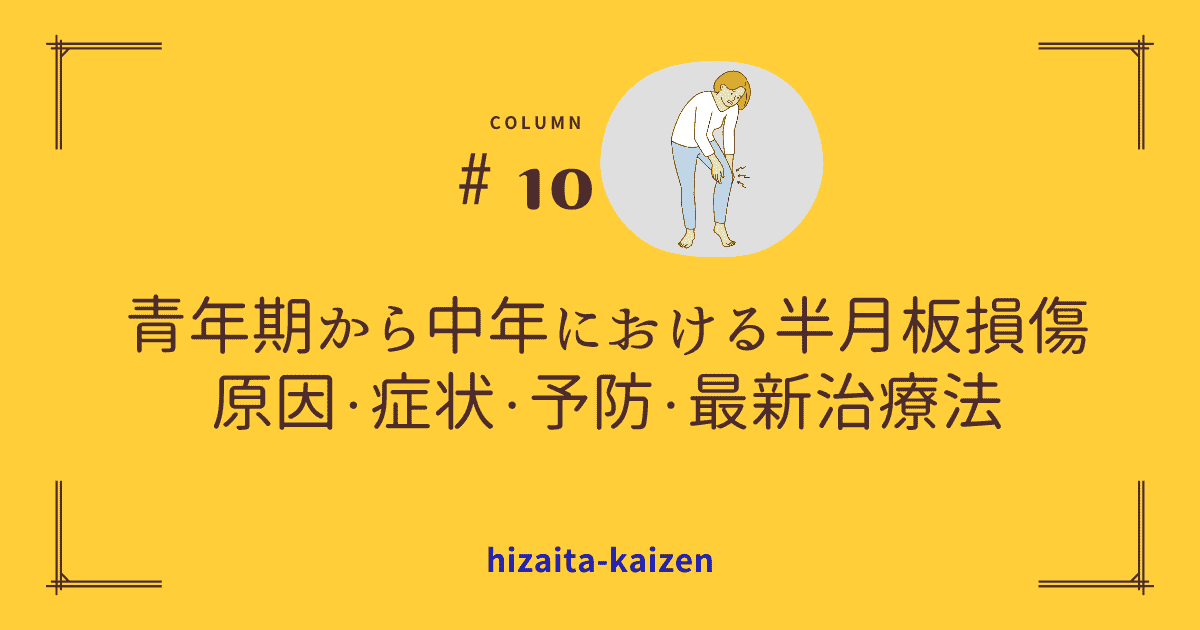半月板損傷は、青年期から中年層に多く見られる膝の怪我で、膝関節の内側および外側にある半月板が衝撃を吸収し膝の安定性を保つ役割を果たします。しかし、スポーツ活動や日常の動作によるストレスが蓄積し、損傷を引き起こすことがあります。